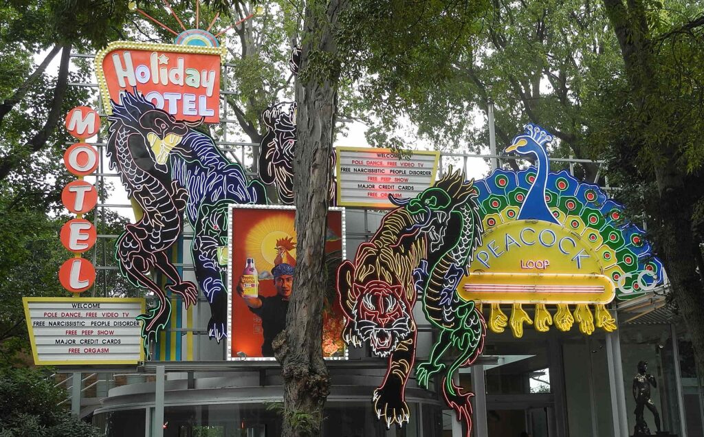 Mit „Morgen ist ein anderer Tag“ breitet sich Mark Bradfort (geb. 1961) im US-amerikanischen Pavillon aus, schwarz als wäre es die schönste Farbe der Welt, schwul, als gäbe es darin nichts Schöneres. Selbst nennt er sich liberal und progressiv. Während Barak Obama regiert, gelangt er ins Weiße Haus, fühlt sich von der Regierung aber nicht vertreten. Was er aus dem Pavillon macht, fühlt sich wie eine Ruine an, eine Vision über Amerika, Malerei, Ästhetik, Identität, Geschichte. Wut lässt in diesem prekären (Regierungs)Palast den Gips wie ordinäre Schminke von den Wänden fallen. Gleich im ersten Raum drängt mich Ekel vor einer hässlichen Decke, die in der Mitte fast den Boden berührt, an die Wand. In der zentralen Rotunde treibt er es auf die Spitze, treibt mich in ein Gebilde zwischen Höhle und Altar, zwischen Natur und Kultur, wo ich nur abwarten kann, was mir geschieht und endlich gehe. Vertrieben.
