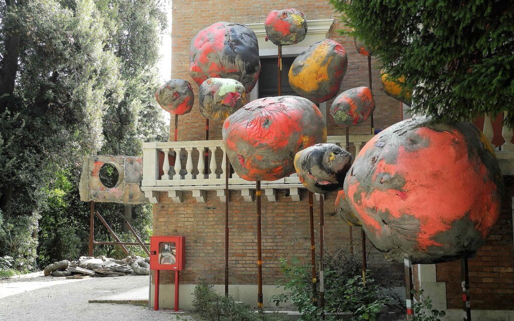 Im GIARDINI zeigt im britischen Pavillon Phyllida Barlow (1944-2023) die Ausstellung „folly“. Wuchtige Skulpturen aus Draht, Sperrholz, Schaumstoff und Textilien füllen beharrlich und behutsam die Räume und verbinden sie. An der Außenmauer wecken sie Neugier.