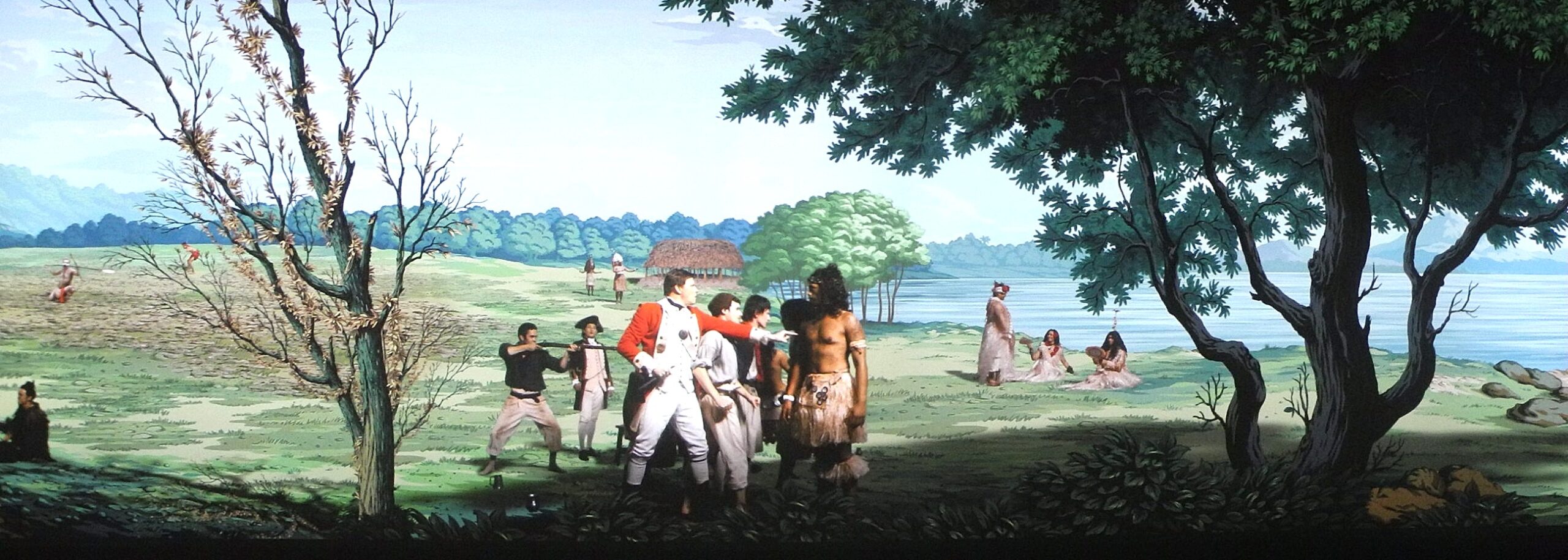 Im ARSENALE präsentiert für Neuseeland die Multimedia-Künstlerin Lisa Reihana (geb. 1964) eine imperialistische Panoramatapete. In „Emissaries“ sitzen oder stehen die Besucher in einem vollständig verdunkelten Raum und sehen ein Video mit nachgestellten Szenen nach der Ankunft von James Cook. Neugier, Erstaunen, Gehorsam, Auflehnung, Zuneigung und erste Gewaltakte bilden ihrerseits Inseln an einem Ort, der zunehmend seine Unschuld verliert. Eine Metapher für das, was mit der Erde vor sich geht, seit Menschen sie behausen? Das Video suggeriert das und behält zugleich eine Ausgewogenheit, die verstört und in mir zum unerträglichen Dilemma eskaliert, vor dem ich mich, mitnichten frei, ins Freie rette.