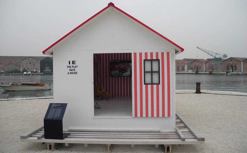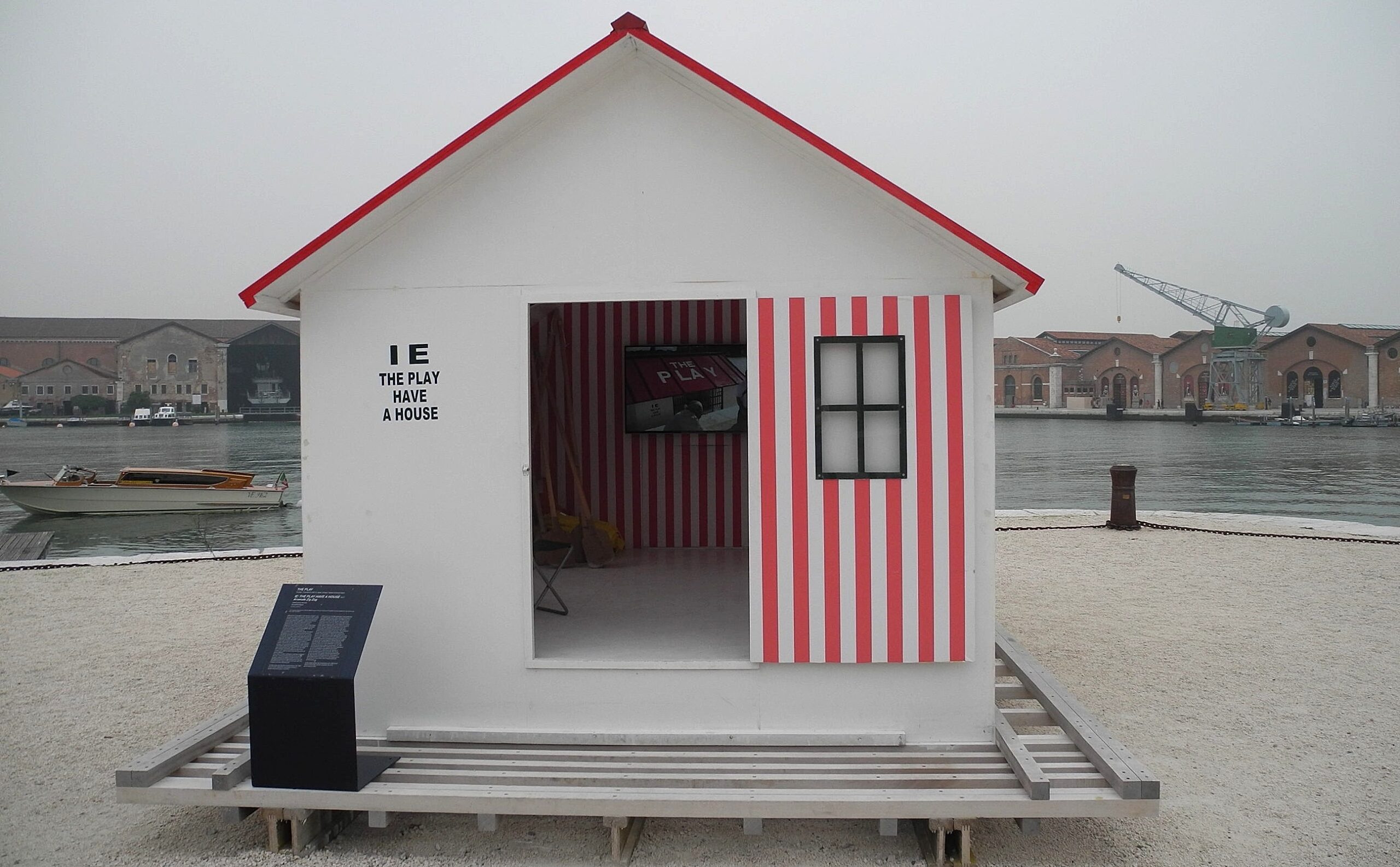 Ein Häuschen anderer Art hat steht am Rand des Wasserbeckens, als wäre es bereit für einen Stapellauf. „The Play“ nennt ein seit 1967 bestehendes japanisches Künstlerkollektiv sein Experiment. Wie ein Spielzeug will das kleine Haus sich„der dumpfen Homogenität der modernen Kultur“ widersetzen. 1972 ließ die Gruppe „ein kleines Haus entlang der Flüsse Kizu und Yodo vom Mount Kasagi in Richtung Osaka Bay schweben“, eine Wohnung für den „Rückzug aus sozialen Hierarchien und individualistischen Werten des modernen Lebens“.