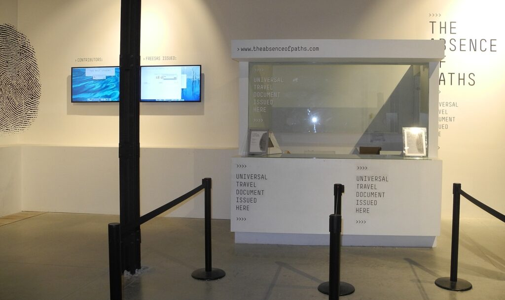 Das tunesische Projekt „Ausweglosigkeit“ erreicht mit wenig Aufwand Nachdenklichkeit. An Zollstationen werden Reisepässe ausgegeben. Ausschlaggebend dafür, wo eingereist werden darf, ist das Herkunftsland. Deutsche dürfen sich über die weltweit größte Akzeptanz freuen. Sie sind in 176 von 218 Ländern willkommen. Gleichzeitig verrät das Dokument, dass aktuell 54 Prozent aller Flüchtlinge aus Syrien, Somalia und Afghanistan sind. Signiert wird das Dokument mit dem Daumenabdruck. Eingestempelt wird: „Wo die Wege fehlen und nur das Menschliche bleibt. gezeichnet Garitta“ (Wachhäuschen).