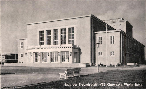 „An der Saale hellem Strande“ heißt ein 2010 entstandener Dokumentarfilm über das „Haus der Freundschaft“ in Schkopau. 1952 wurde es für die Buna-Chemie-Werke gebaut, eines der fünf größten Industriekomplexe in der DDR. Ernst Busch und Helene Weigel gastierten hier mehrfach mit dem Berliner Ensemble und Künstler wie Marcel Marceau, Juliette Greco, Igor und David Oistrach und internationale Ensembles wie die Mailänder Scala, das Bolschoi-Theater Moskau oder das Königlich-Schwedische Ballett Stockholm. In den Jahren 1965 und 1966 war das Haus für Walter Felsenstein, dem legendären Intendanten der Komischen Oper Berlin, während einer umfangreichen Sanierung der Berliner Spielstätte die erste Wahl für das benötigte Ausweichquartier.
